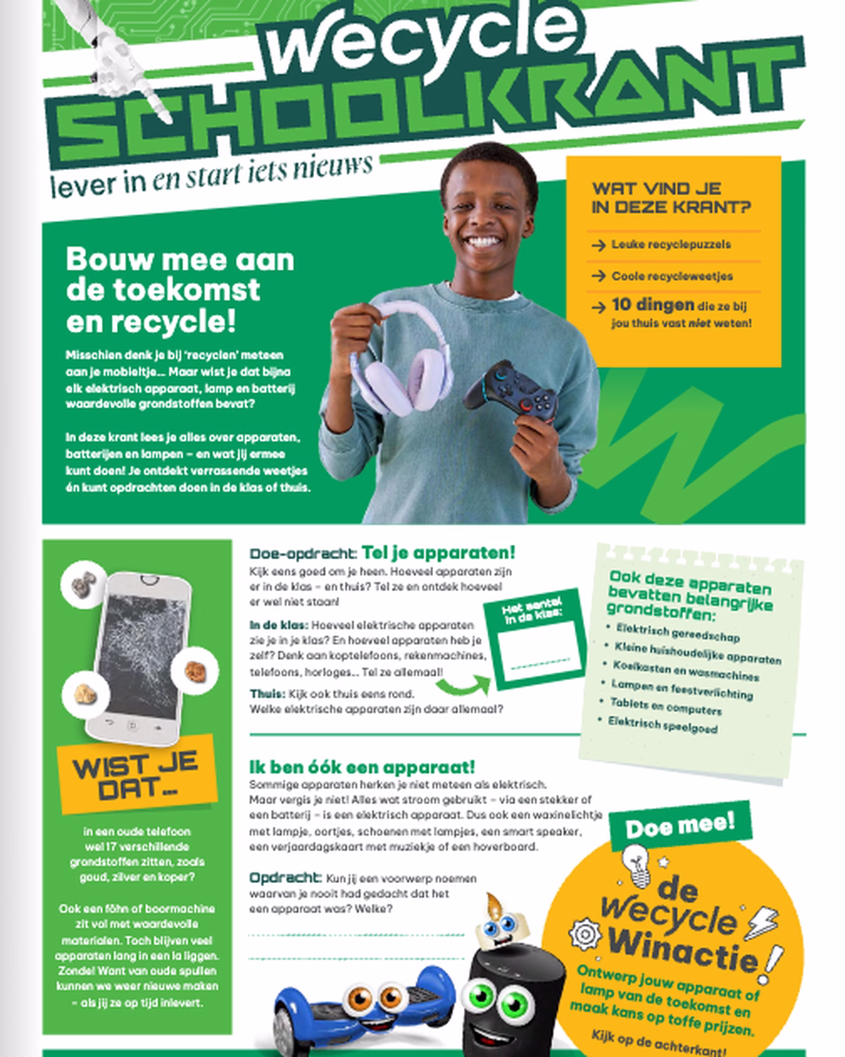 Ruim 4.500 basisscholen hebben voor groep 7 en 8 de Wecycle Schoolkrant 2025 ontvangen, vol met weetjes en puzzels over recycling.